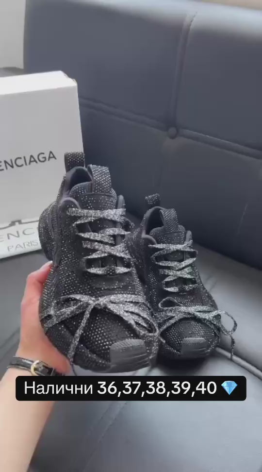 Дамски маратонки с контрастна гумирана линия отстрани. Масивна подметка с грайфер с лого и камъни. Комплекта включва кутия, сертификат и противопрахов сак за обувки.